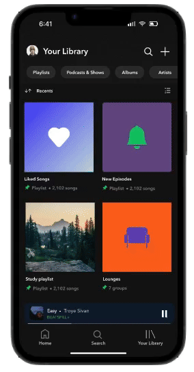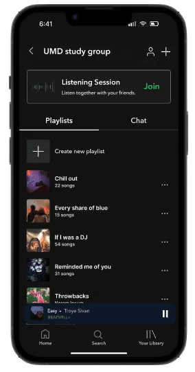 To encourage more social interaction between Spotify users, I developed features revolving around in-app music sharing. This is where users can invite friends to join "Lounges" where they can share music directly in the app, listen and react to songs together in real time, build collaborative playlists and edit playlist covers.
